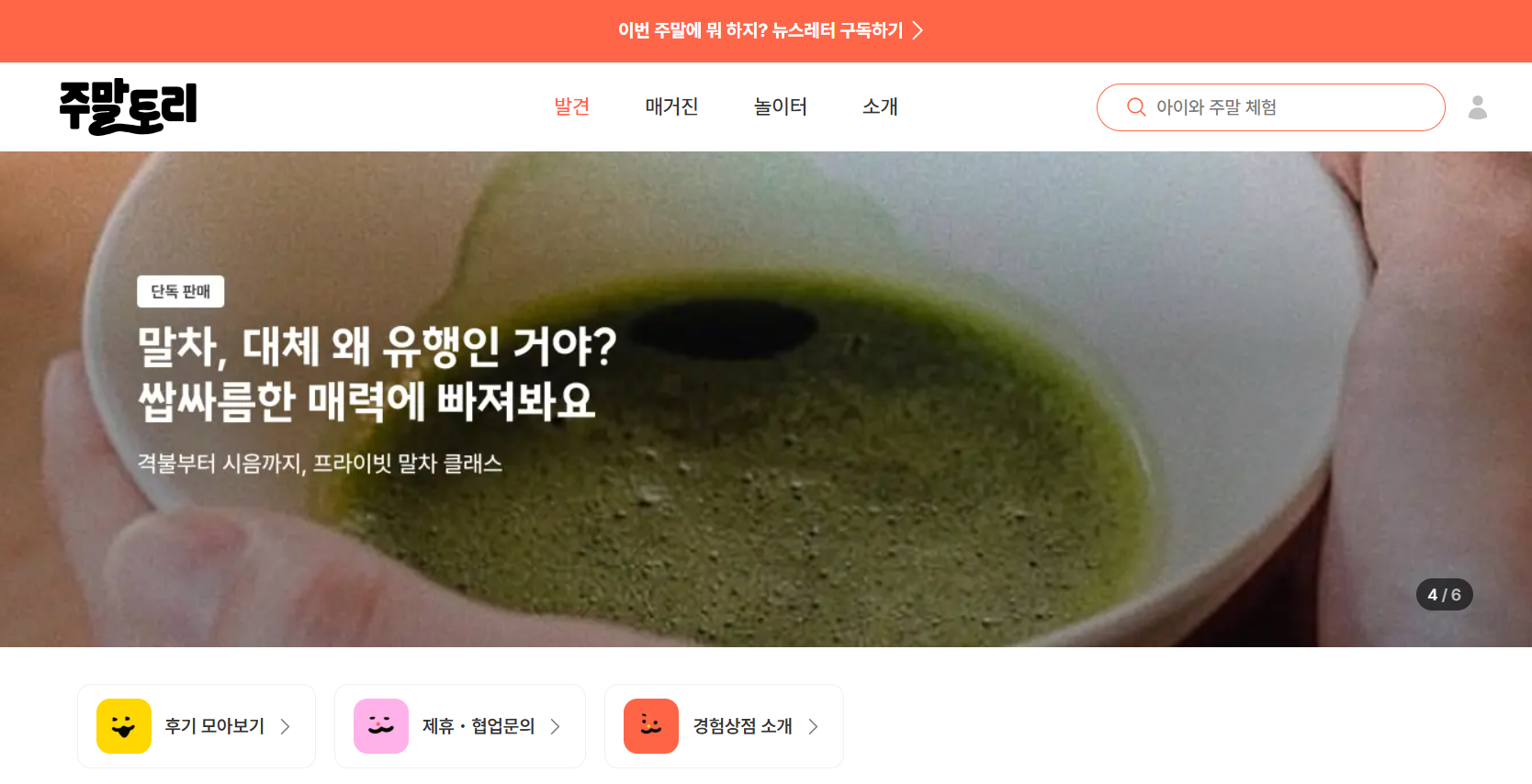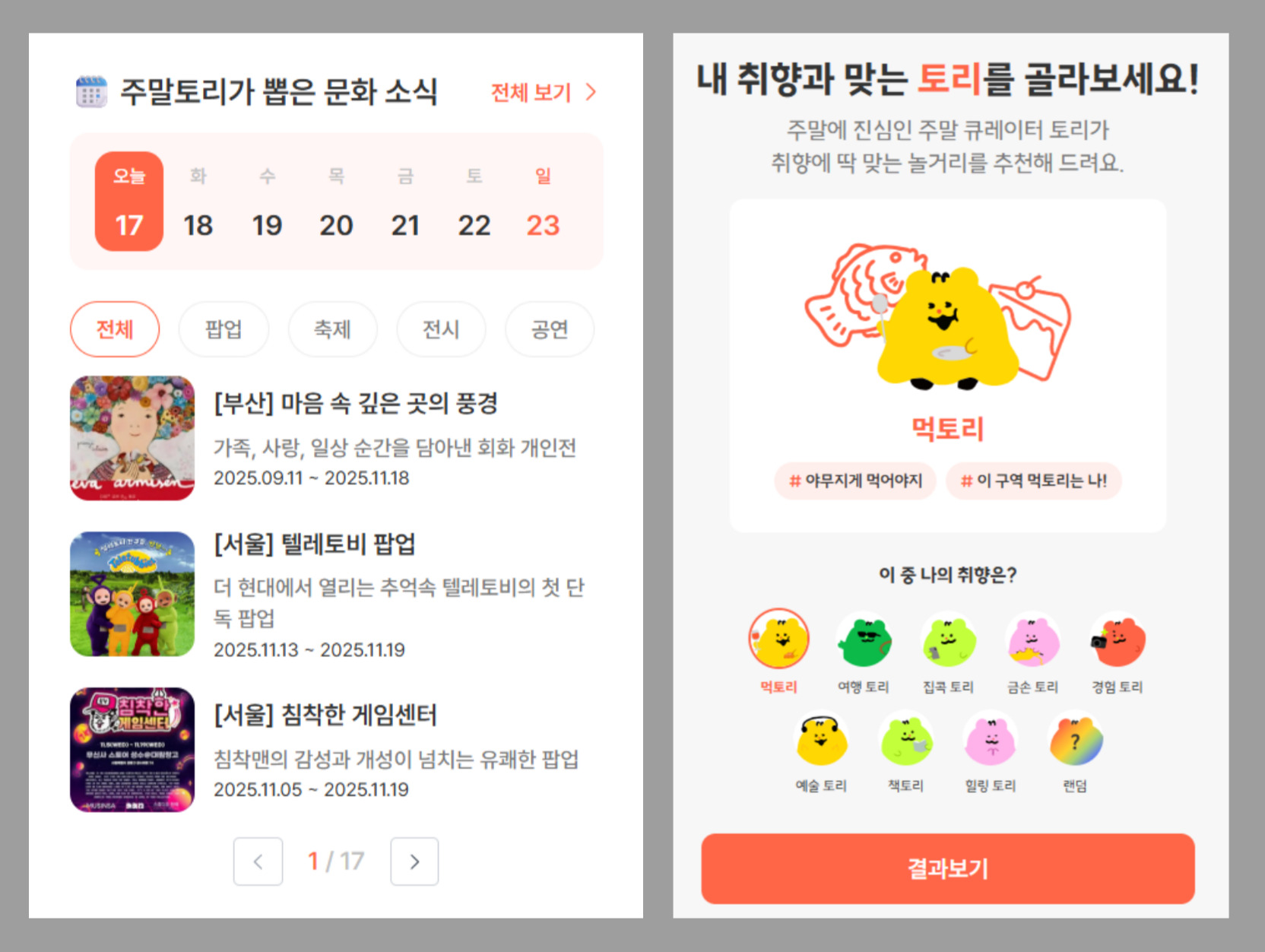 에디터의 주말을 책임져주는 여가 큐레이팅 브랜드 ‘주말토리’ 사이트는 전체적으로 귀욤귀욤한 디자인이 가장 먼저 눈에 들어오지만, 조금 더 들여다보면 섬세한 고민과 디테일이 정말 많이 녹아있었답니다.