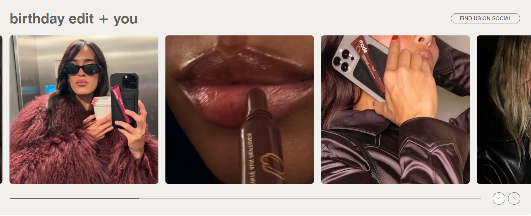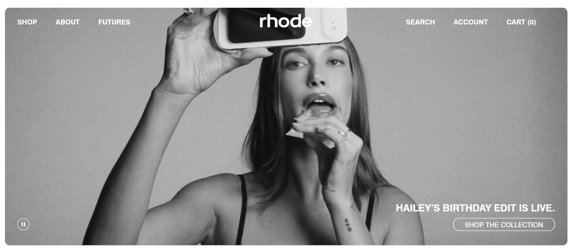 헤일리 비버의 뷰티 브랜드 'rhode'는 화제성 높은 제품으로도 익히 유명하지만, 웹사이트 역시 잘 구성되어 있어요.